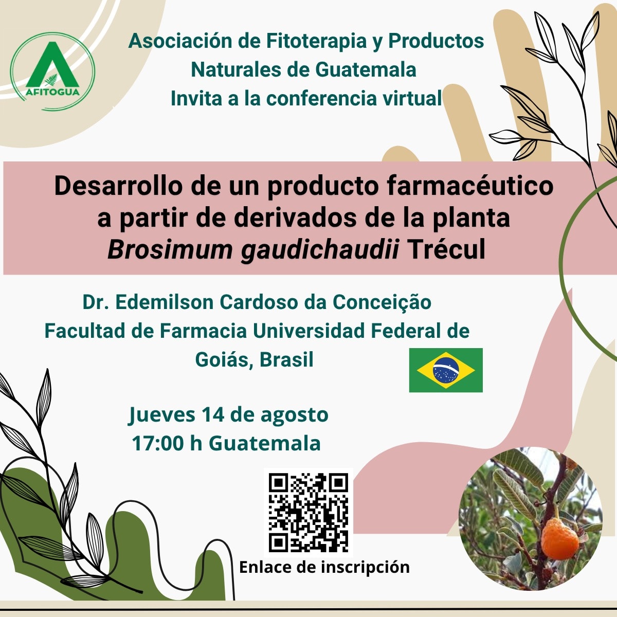 Conferencia virtual «Desarrollo de Producto Farmacéutico a partir de derivados de la planta Brosimum gaudichaudii Trécul» agosto 11, 2025 por mynor