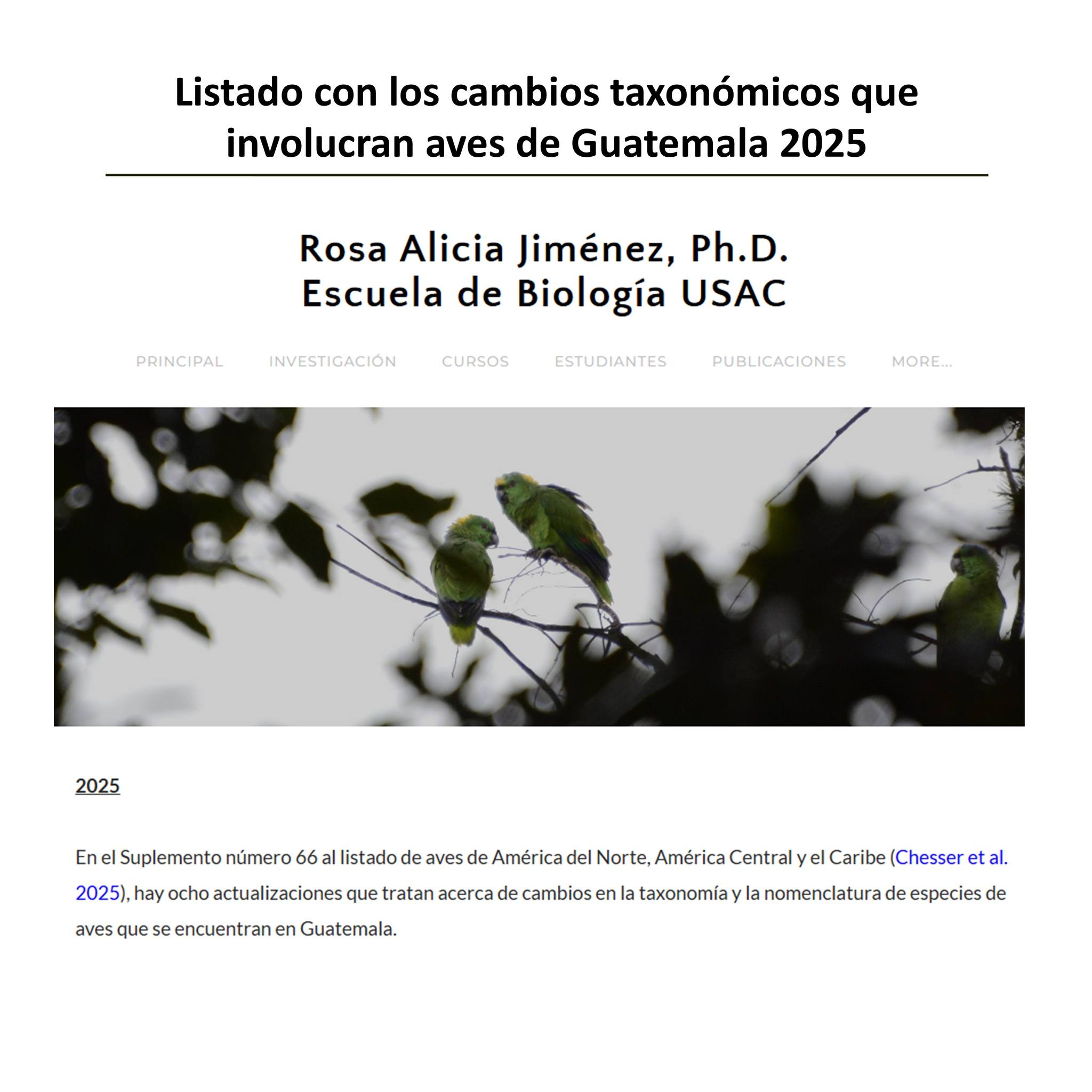 Listado de cambios taxonómicos en aves de Guatemala 2025 de la Dra. Rosa Alicia Jiménez, Bióloga colegiada agosto 19, 2025 por mynor