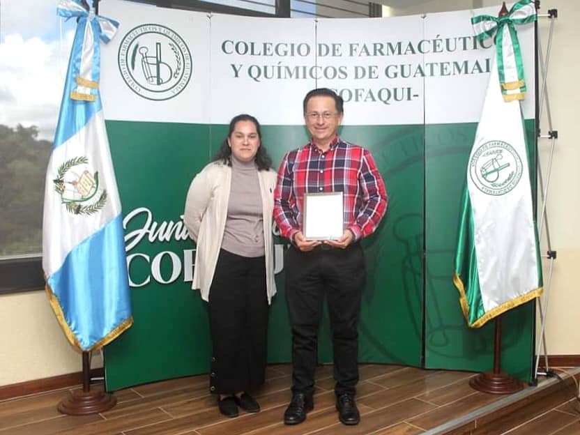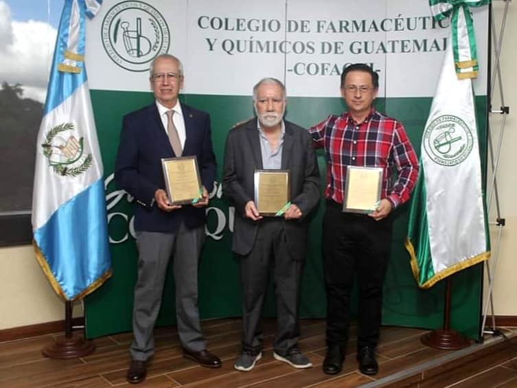 El pasado sábado 28 de octubre, el Colegio de Farmacéuticos y Químicos de Guatemala (COFAQUI) celebró el Día del Químico con una entrega de reconocimientos a 3 colegiados, con el objetivo de exaltar a las agremiados que cuentan con una trayectoria profesional destacada y por sus grandes contribuciones en la salud, educación, investigación o industria de nuestro país.