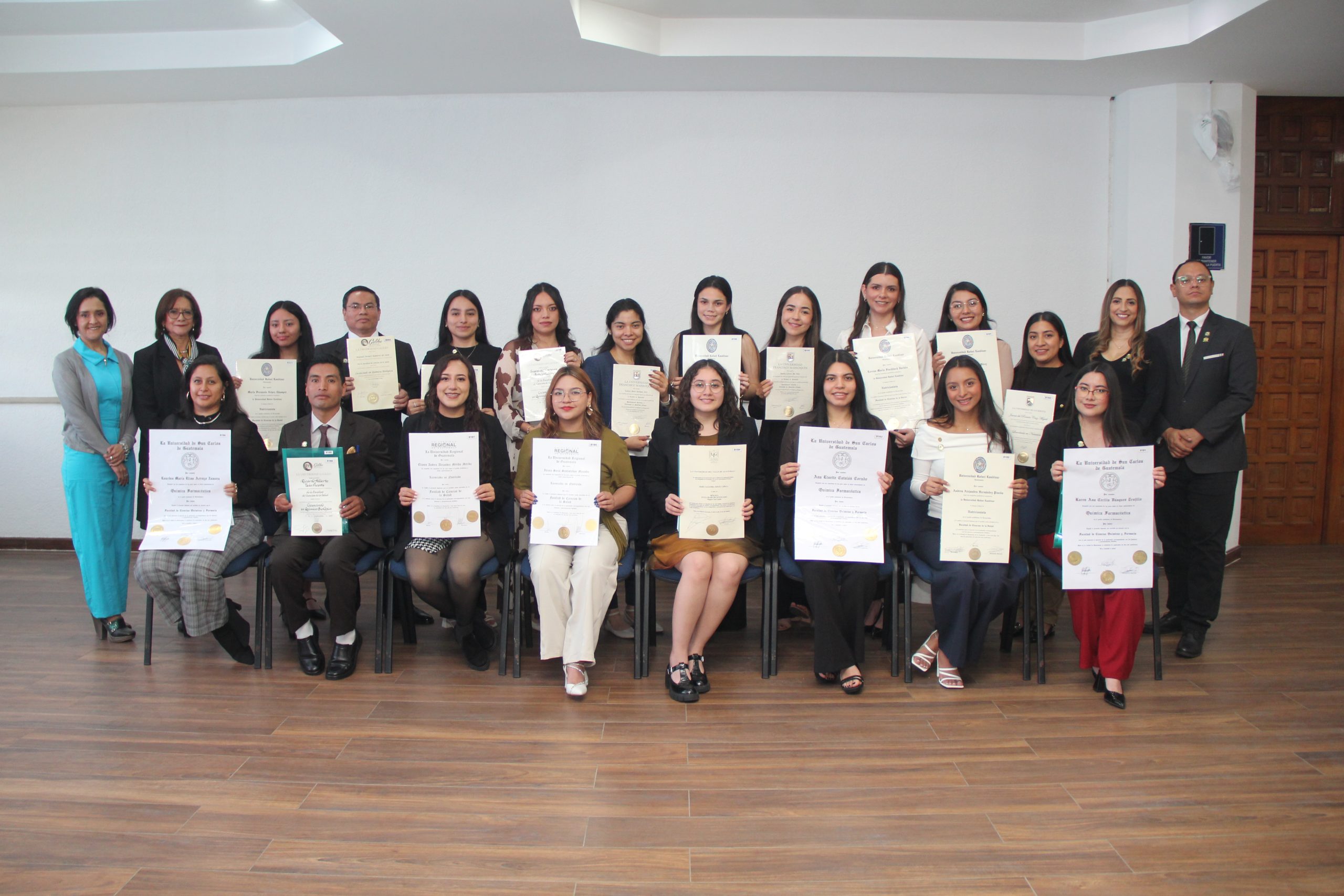 39 profesionales se inscribieron recientemente en el Colegio de Farmacéuticos y Químicos de Guatemala (COFAQUI) y participaron en 2 solemnes actos de juramentación realizados este sábado 6 de diciembre de 2025. El grupo de nuevos colegiados estuvo conformado por 21 Nutricionistas, 9 Químicos Biólogos, 7 Químicos Farmacéuticos, 1 Biólogo y 1 Bioquímico.